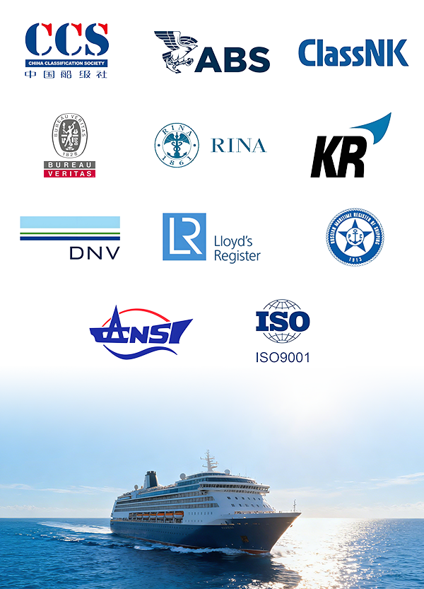 產(chǎn)品先后取得CCS產(chǎn)品型式認(rèn)證、BV工廠檢驗(yàn)型式認(rèn)證以及中國(guó)、美國(guó)、英國(guó)、法國(guó)、德國(guó)、意大利、挪威、日本、俄羅斯、韓國(guó)船級(jí)社產(chǎn)品檢驗(yàn)認(rèn)可證書。累計(jì)申請(qǐng)和獲得國(guó)家發(fā)明專利2項(xiàng),實(shí)用新型專利30項(xiàng)。2014年獲國(guó)家標(biāo)委會(huì)采用國(guó)際標(biāo)準(zhǔn)I類證書;2021年獲江蘇省工業(yè)企業(yè)質(zhì)量信用A級(jí)企業(yè);2024年獲中國(guó)機(jī)械工業(yè)聯(lián)合會(huì)全國(guó)機(jī)械工業(yè)產(chǎn)品質(zhì)量創(chuàng)新大賽優(yōu)秀獎(jiǎng)。公司在供應(yīng)鏈中幫助下游船廠和終端用戶降低采購(gòu)成本,縮短供貨周期,提升了整個(gè)產(chǎn)業(yè)鏈的價(jià)值和競(jìng)爭(zhēng)力。